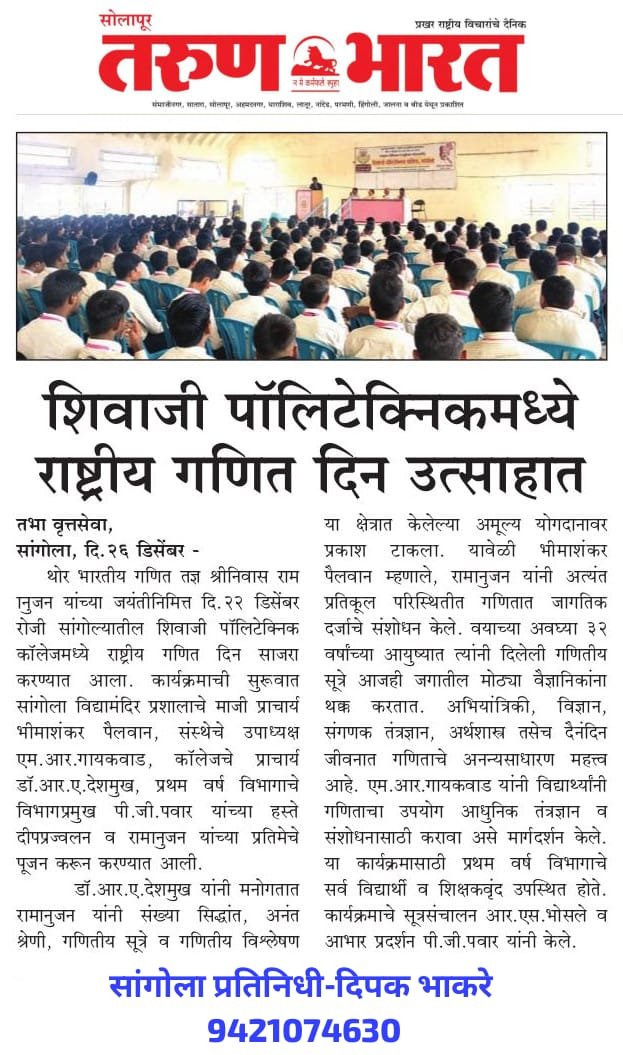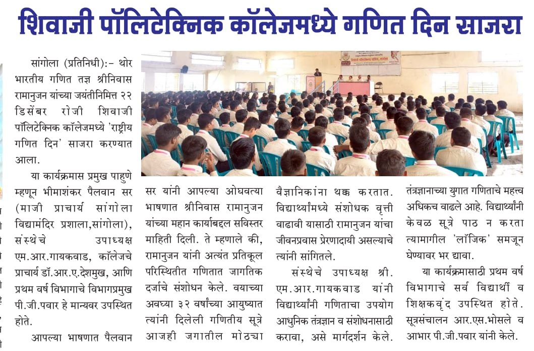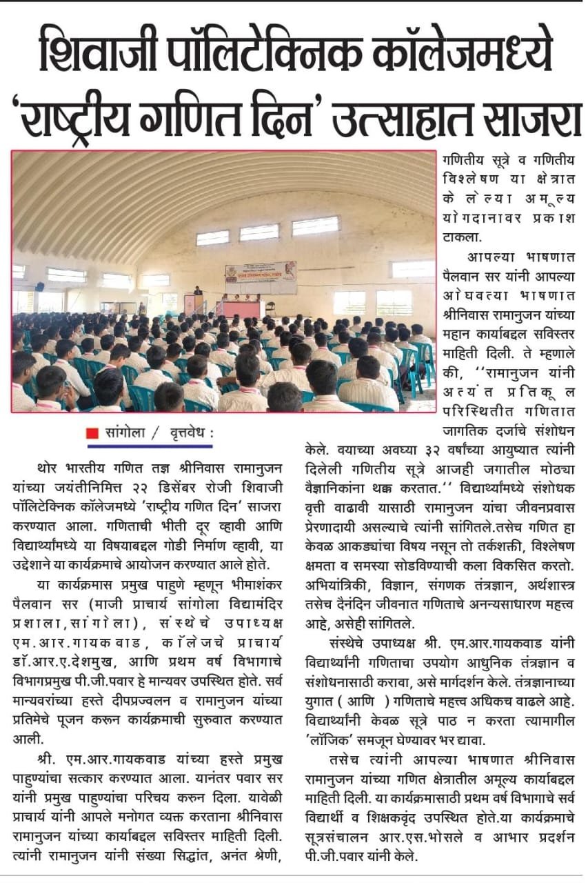 WELCOME TO SHIVAJI POLYTECHNIC COLLEGE, SANGOLA