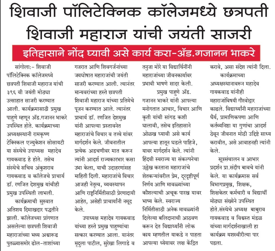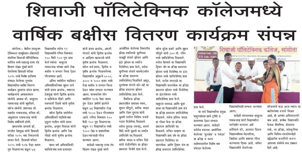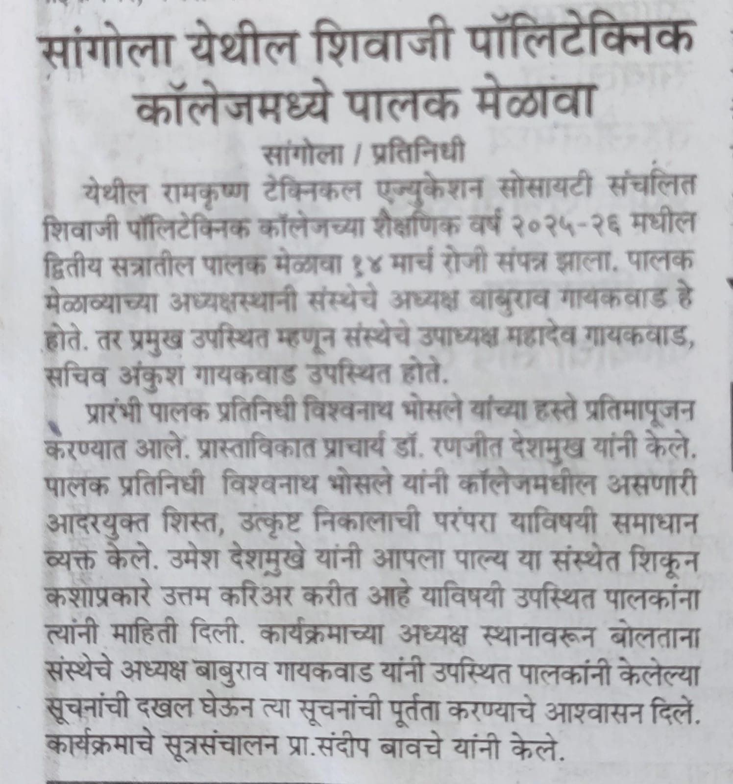 WELCOME TO SHIVAJI POLYTECHNIC COLLEGE, SANGOLA